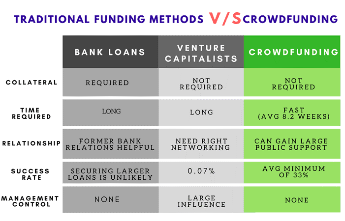 - No debt: Unlike loans, crowdfunding does not require repayment, making it a safer option for startups.